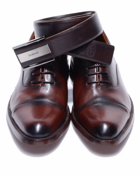 La medida de un cinturón se toma desde el final de la hebilla hasta el cuarto orificio.
