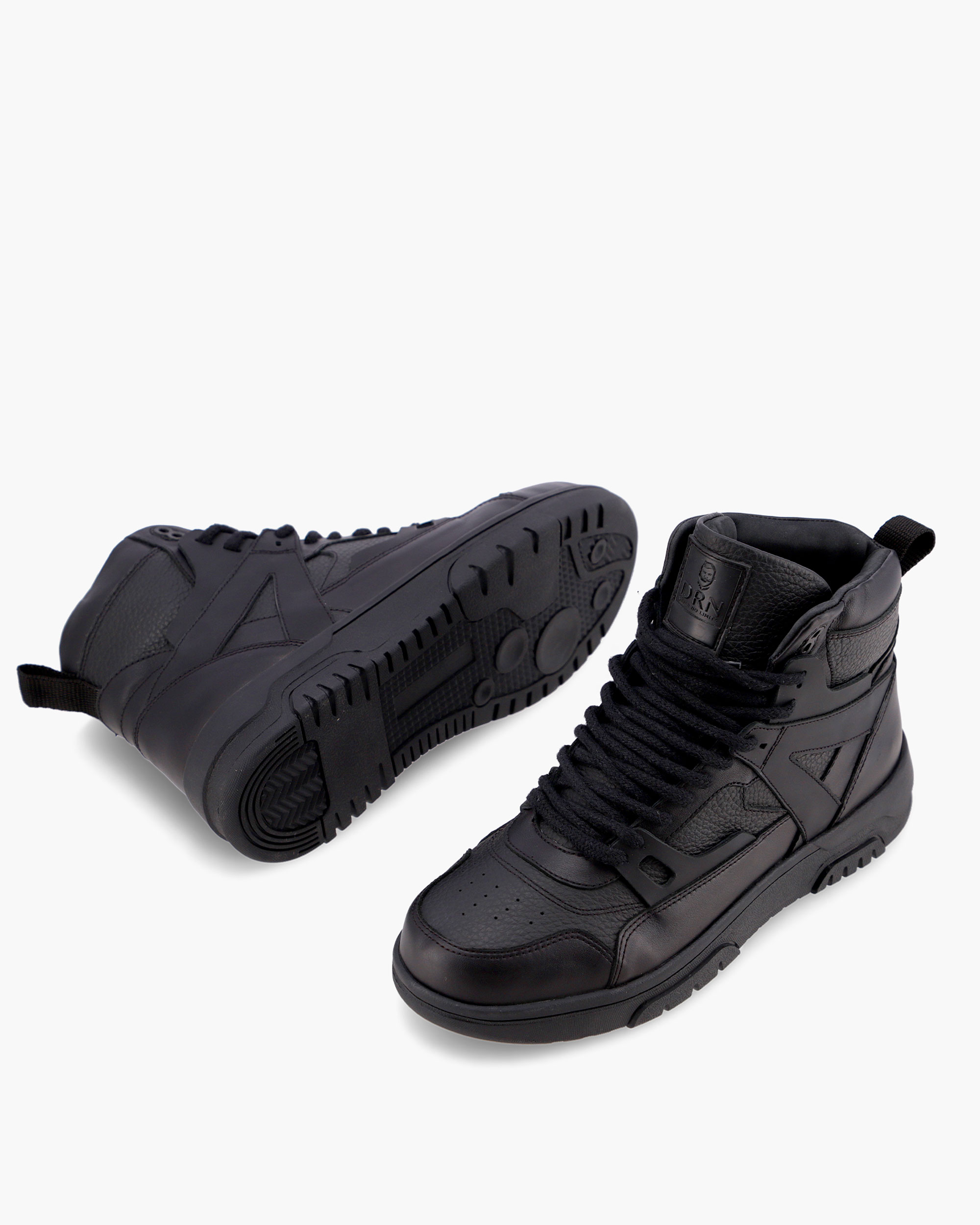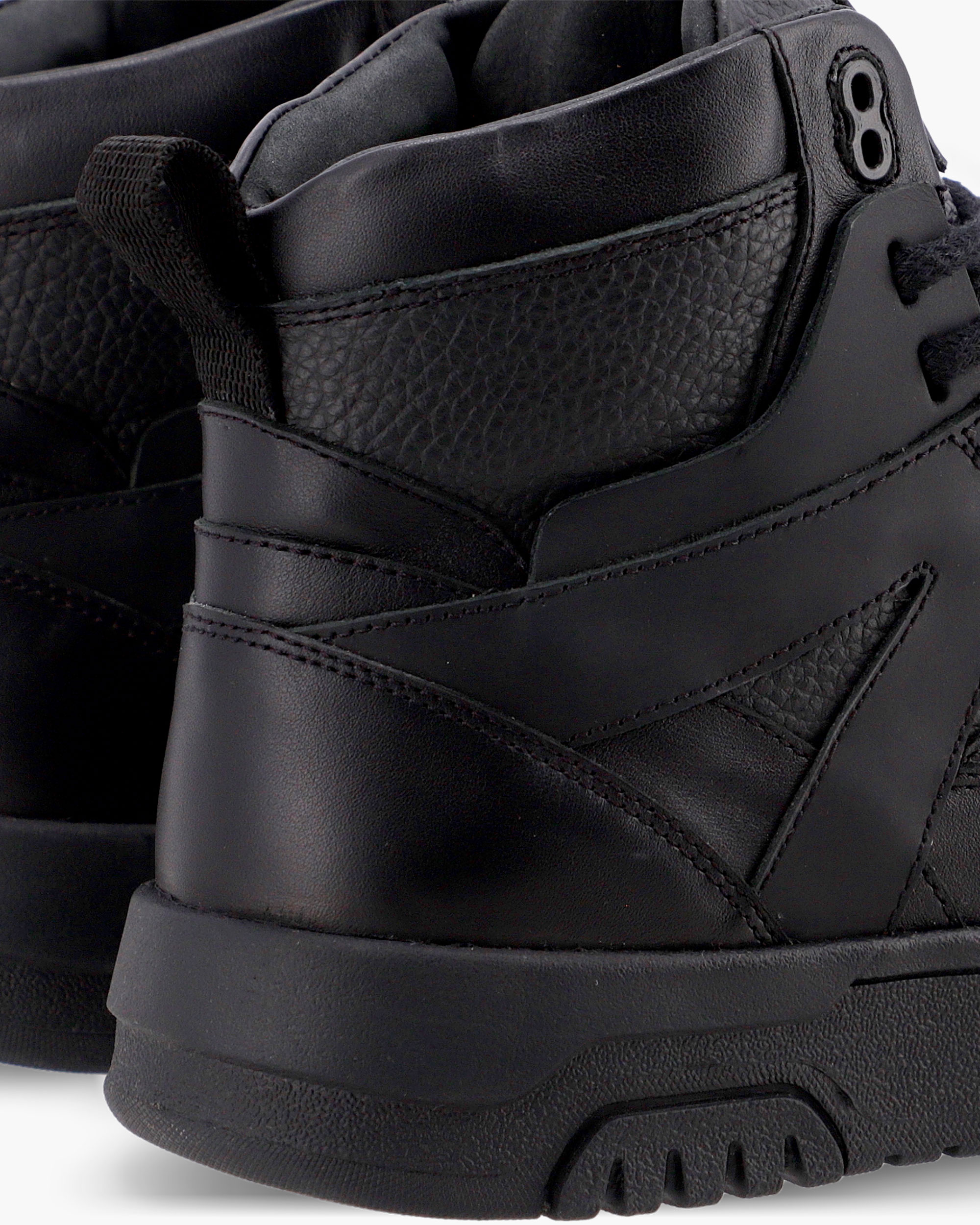 The leather material provides a soft and durable finish, ideal for extended wear. The interior of the sneakers is lined with soft leather for added comfort.