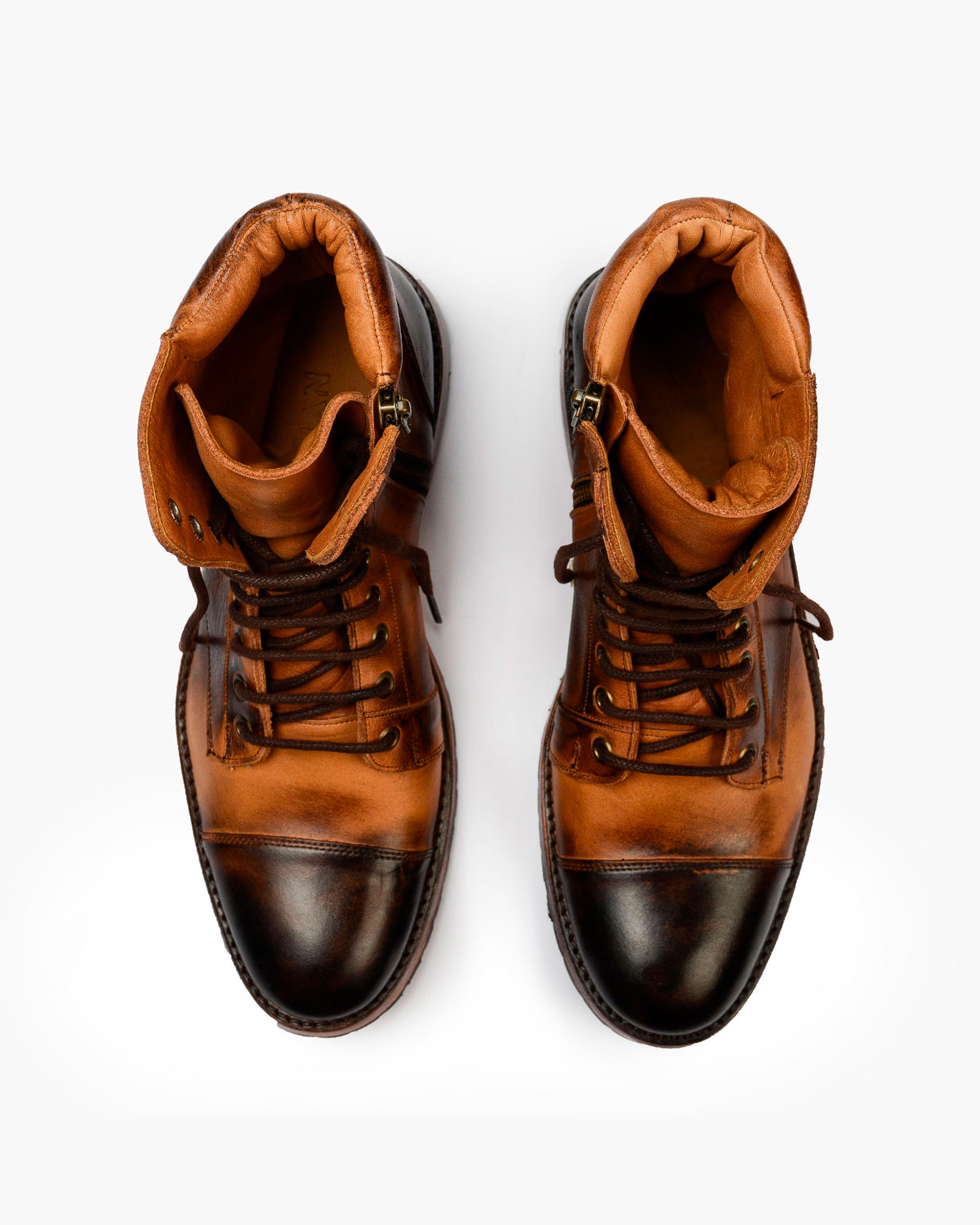 Boots with a side zipper, crafted from 100% genuine cowhide leather, a high-quality material that guarantees their strength and durability.