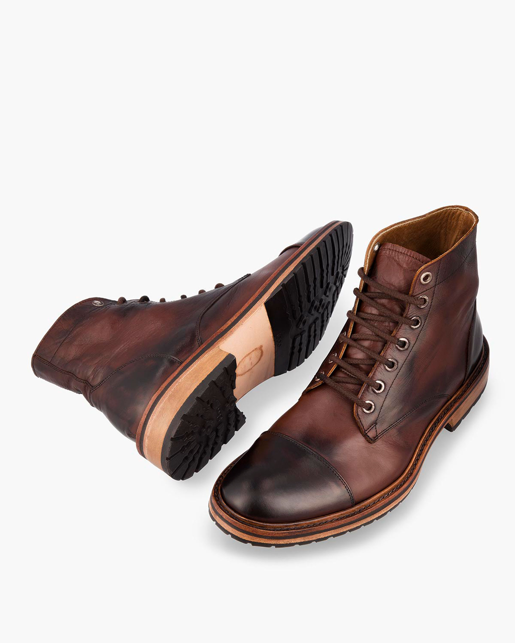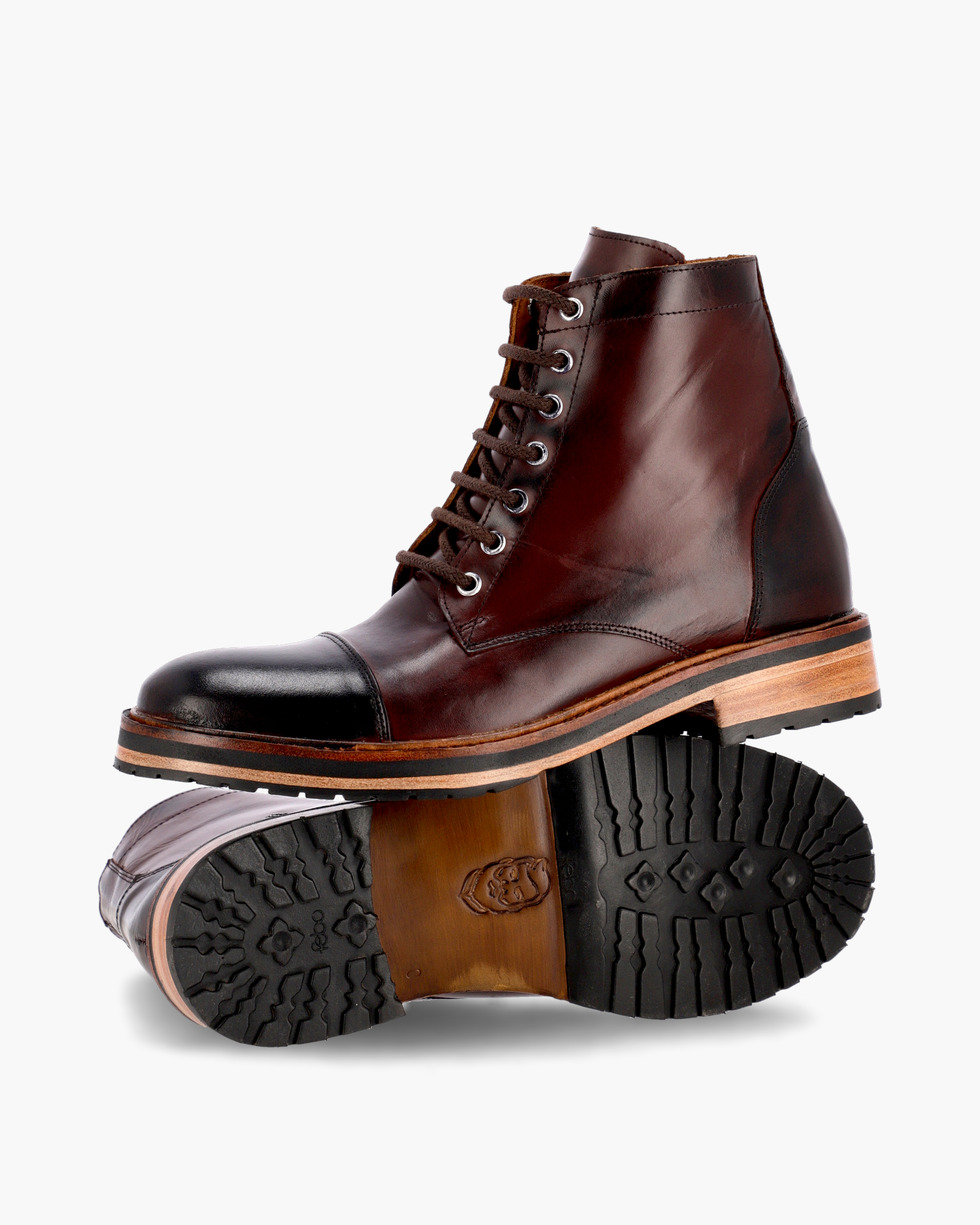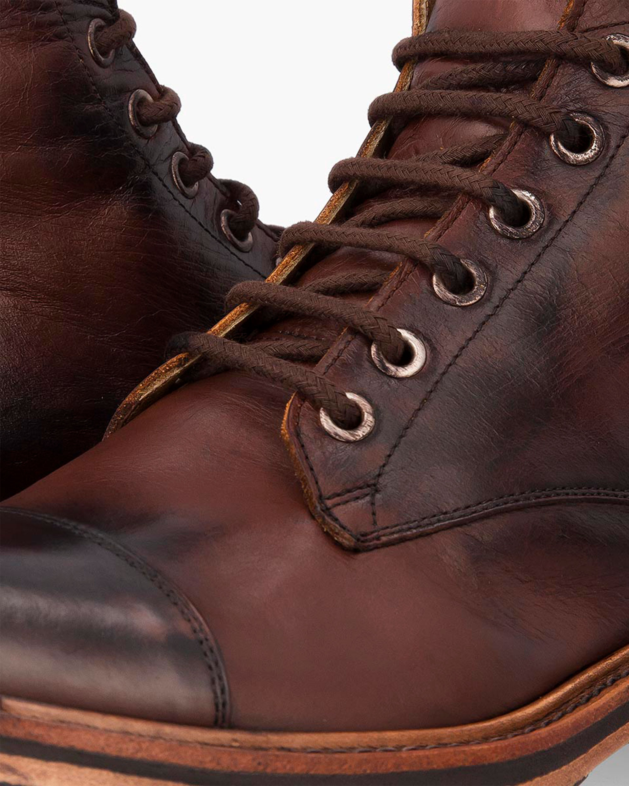 Handcrafted boot made of genuine leather, with a leather lining. Febo sole with a non-slip heel. The heel is 3.5 cm high and the laces are made of waxed cotton.