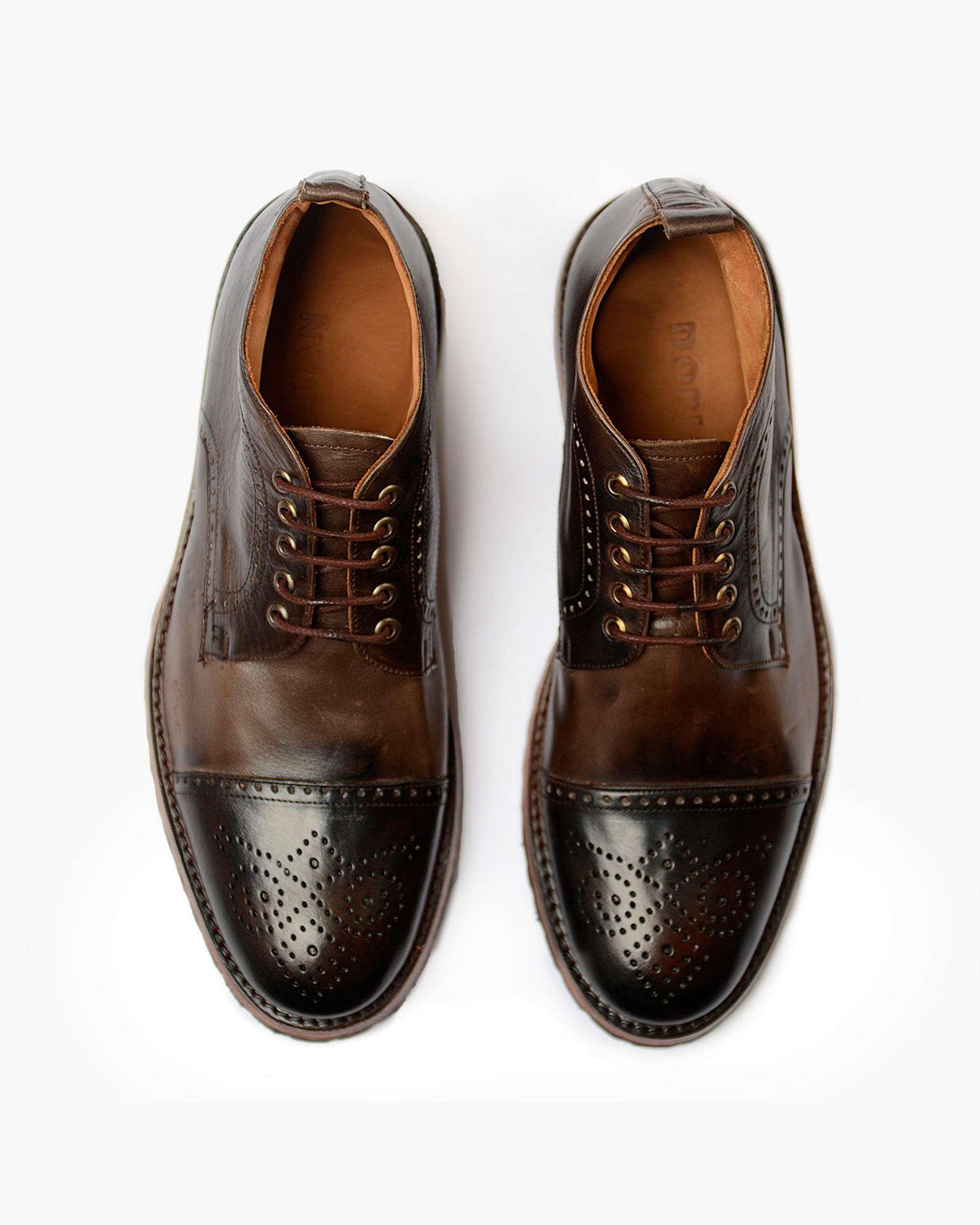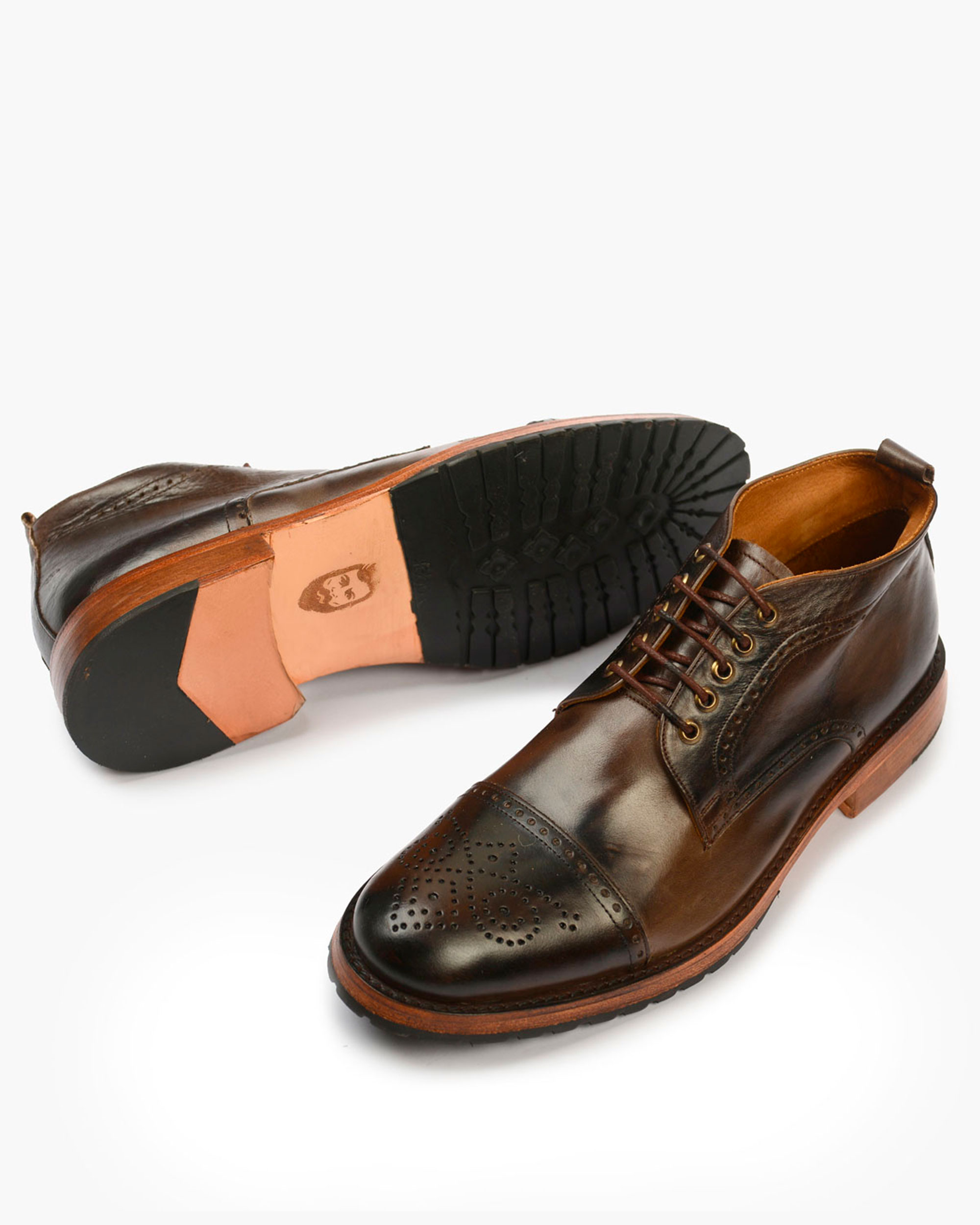 Sporty style boot, handcrafted from genuine leather. Leather sole and waxed cotton laces.