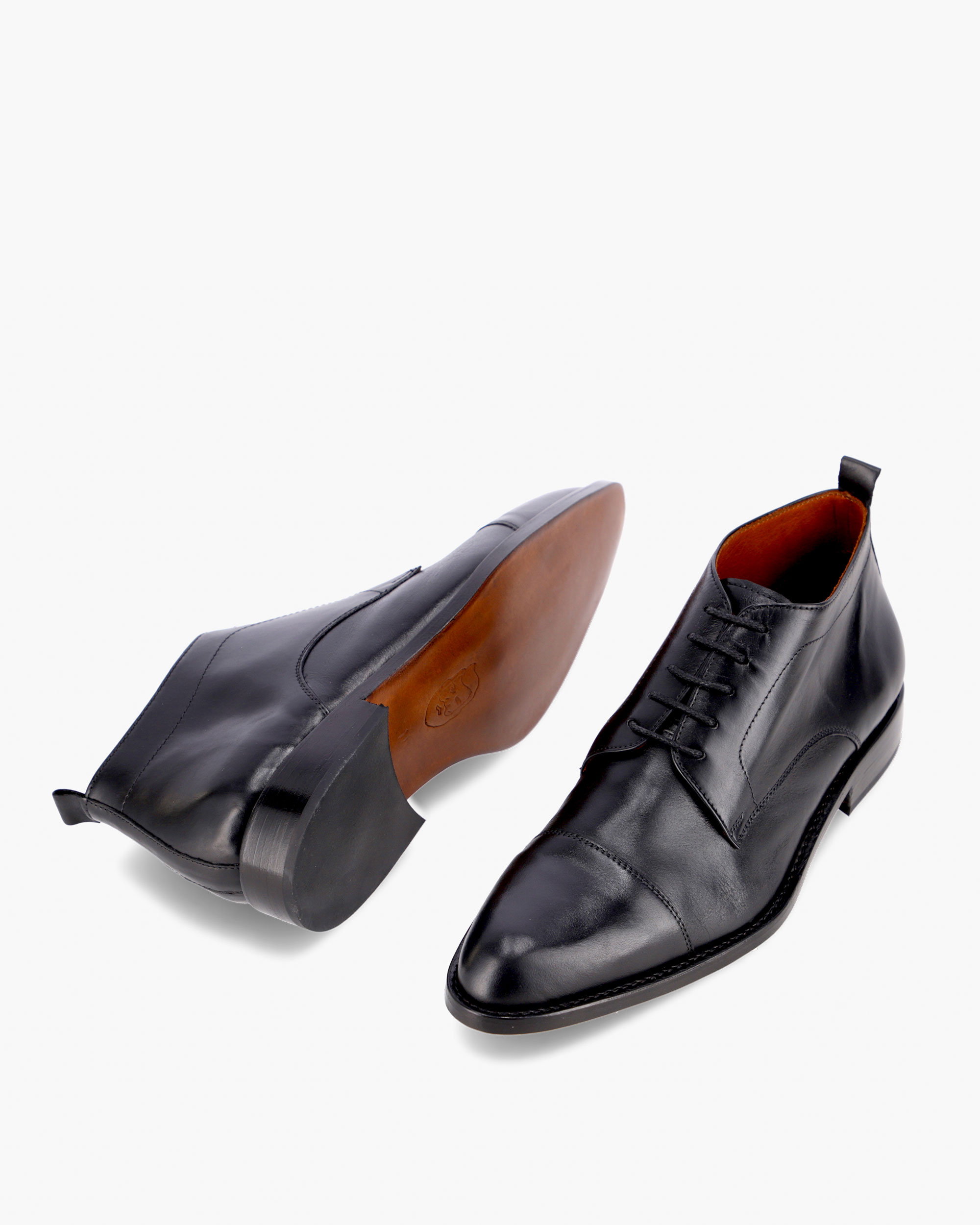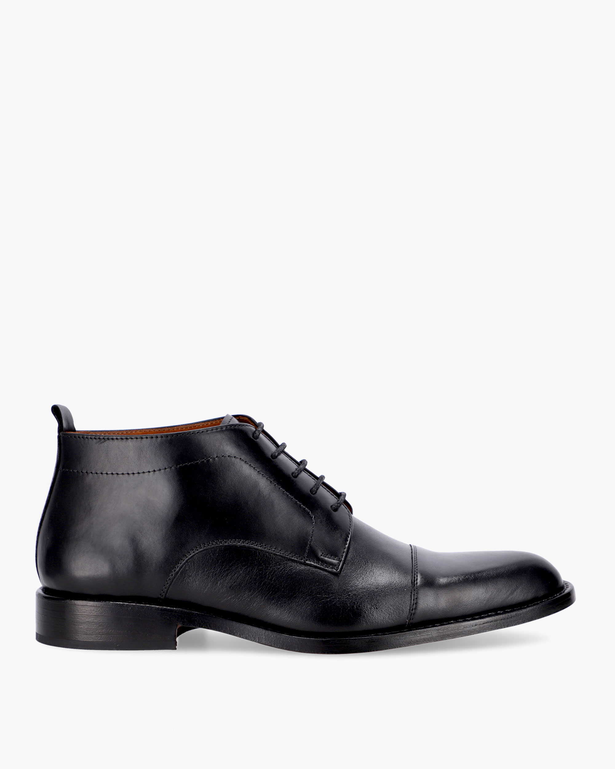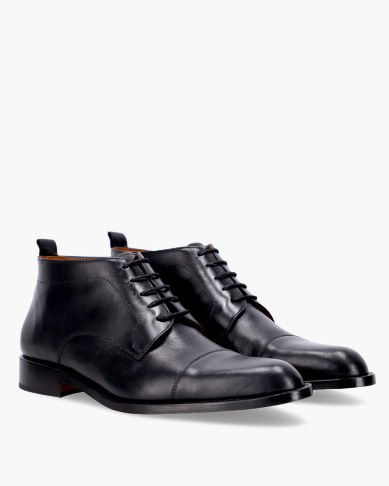 Handcrafted dress boot. The upper is made of aniline-dyed cowhide and the interior is lined in leather. The heel is 3 cm high and the laces are made of waxed cotton. Both the sole and the heel protector are made of natural leather.
