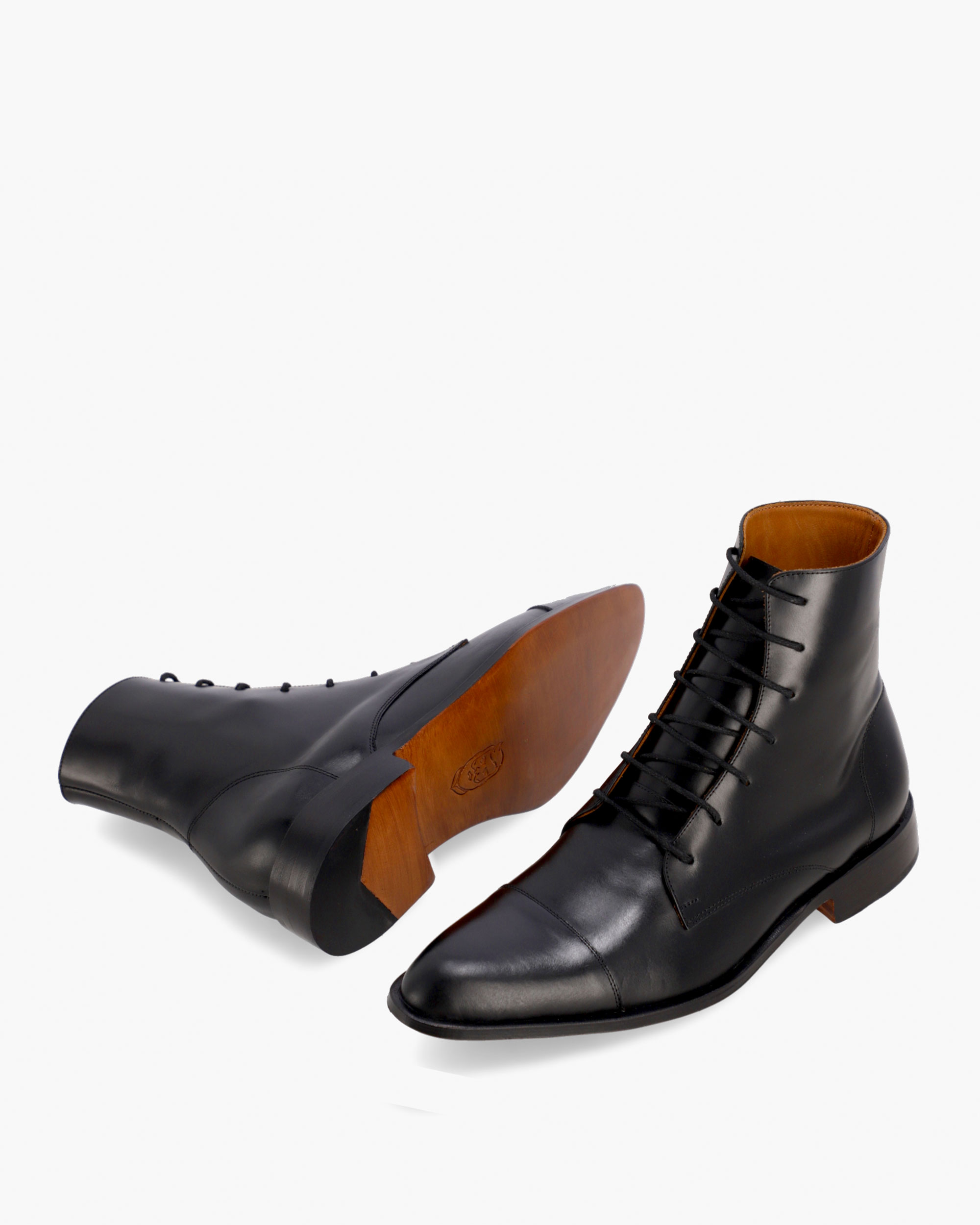 High-top boots with an elegant and sophisticated design. Made from genuine leather, the upper is crafted from high-quality leather, making it resistant and durable, and the insole is fully lined in leather. Waxed cotton laces.