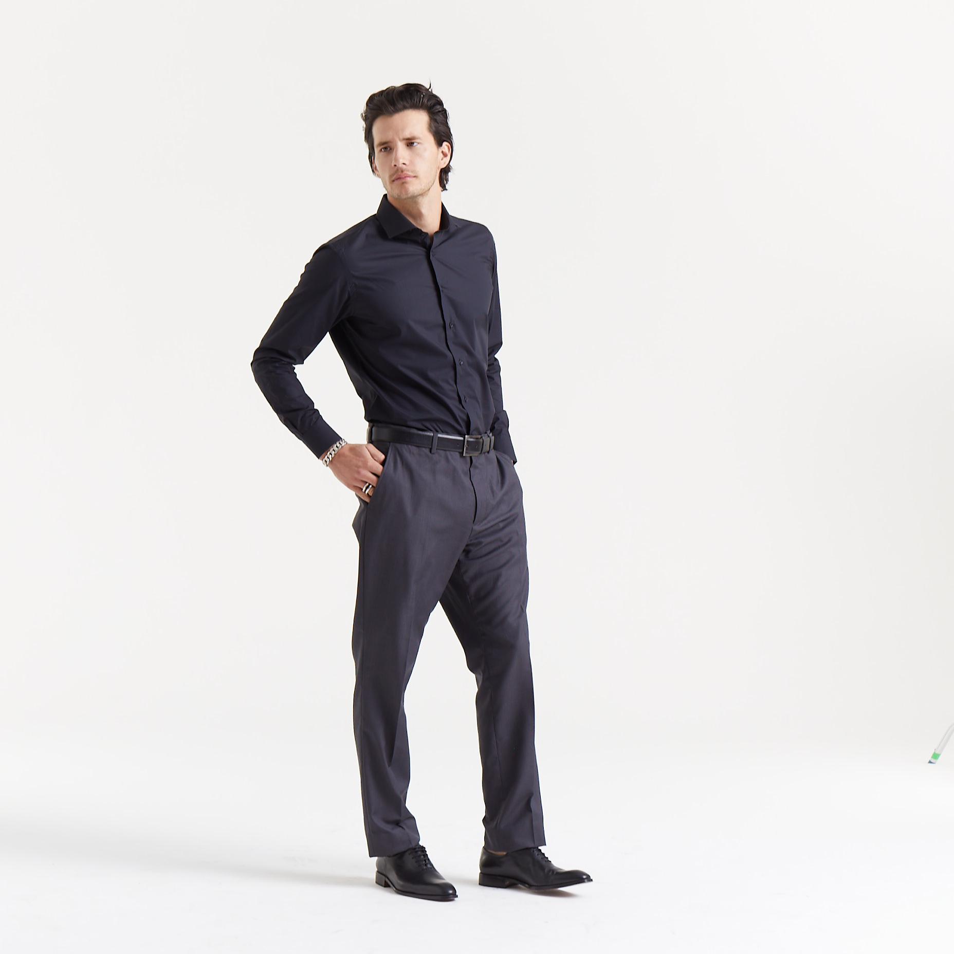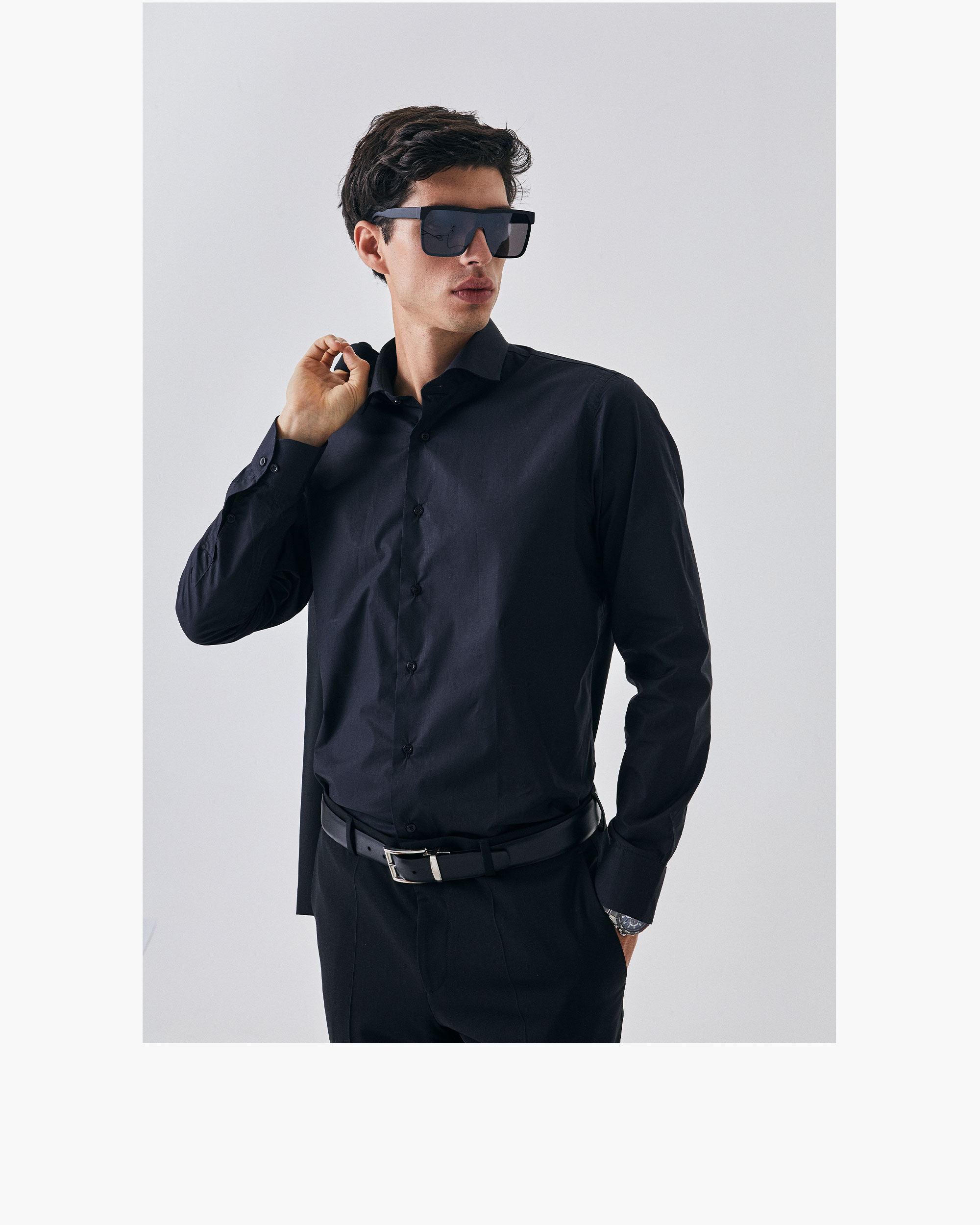Plain long-sleeved shirt made from high-quality cotton sateen, a cool and soft fabric. Features a subtle shimmer detail and a slim fit.