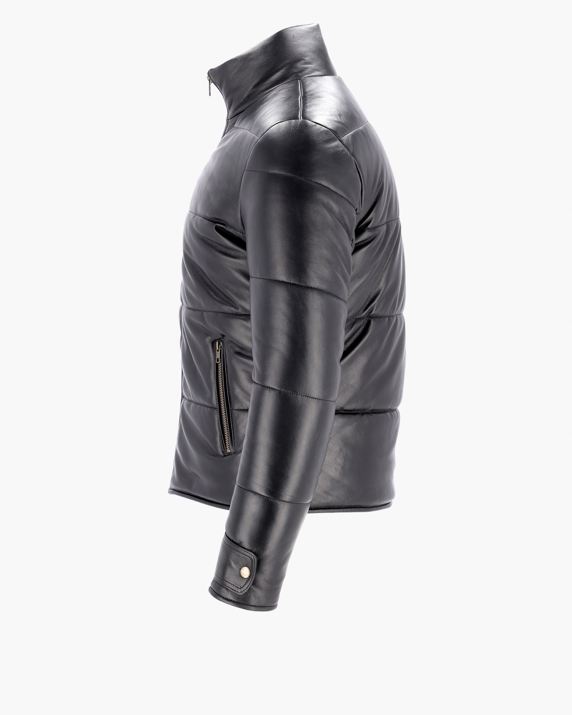 It also features a suede microfiber lining and double-layer wadding, giving it a puffy look and keeping you warm at all times. It has two side pockets for storing your personal items, a hidden interior pocket for added security, and adjustable cuffs for a perfect fit. The mandarin collar adds a touch of elegance and modern style.