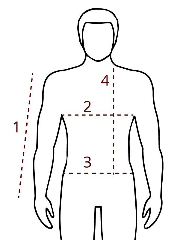 1. Mangas: con el brazo relajado al costado del cuerpo, medir desde el inicio del hombro,  pasando por el codo y hacia abajo hasta la muñeca.