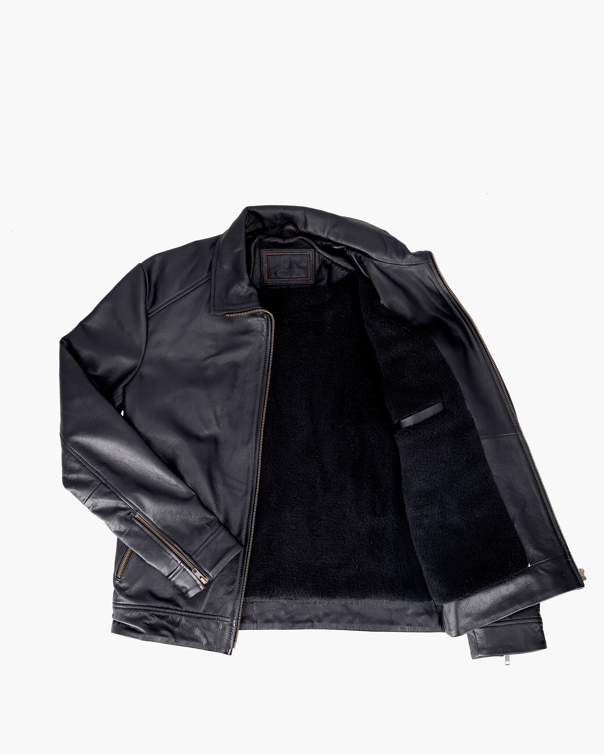 Leather jacket crafted from 100% Argentinian cowhide, renowned for its quality and durability. Its fitted design accentuates the figure and perfectly complements your outfit. It’s fully lined with black sherpa fleece, providing a soft and warm feel. It features three zippered front pockets and an interior pocket for added convenience and security. This versatile garment is easy to style, perfect for a casual look with jeans and boots or for a more formal style with dress pants and a shirt.