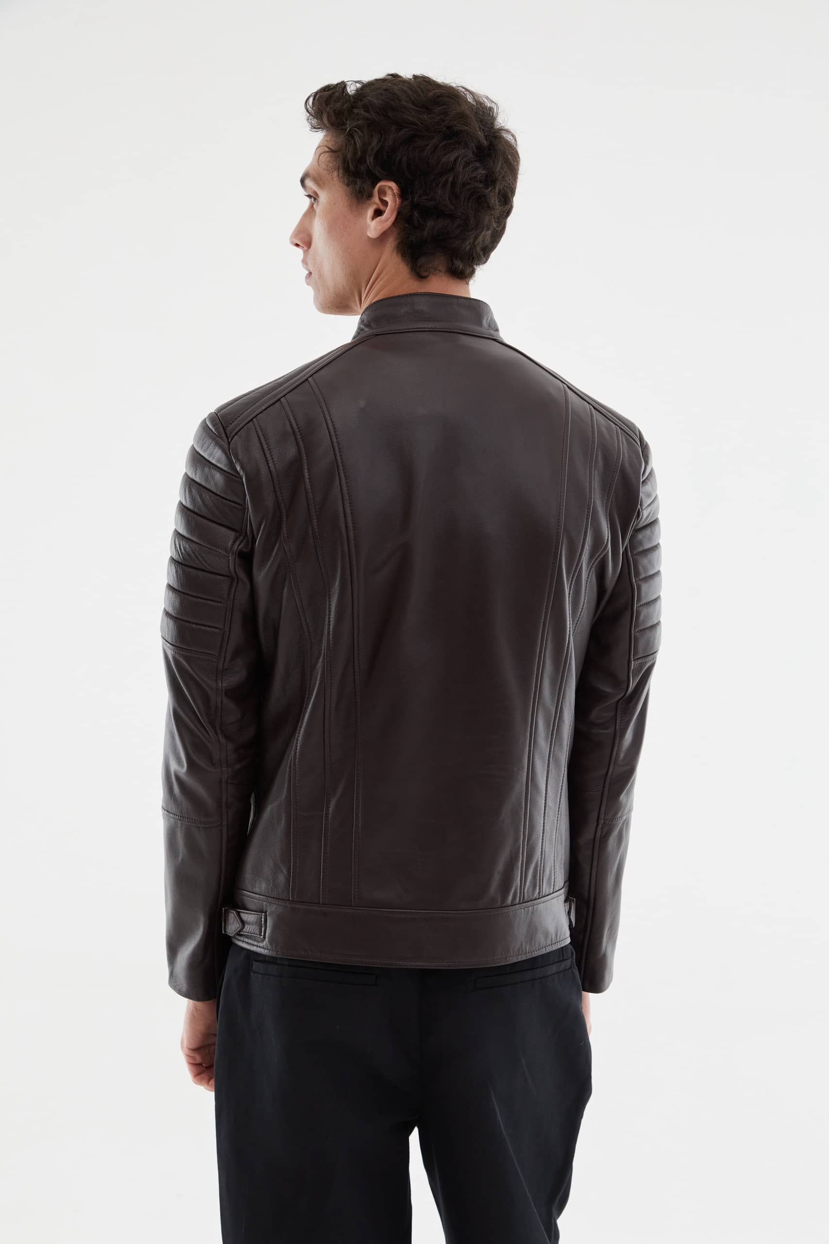 Handcrafted jacket made from 100% genuine Turkish sheepskin leather. Classic design with antique bronze buttons and zippers, quilted detailing on the sleeves and back. Fully lined with suede-like microfiber. Waist with buckles for a customized fit.