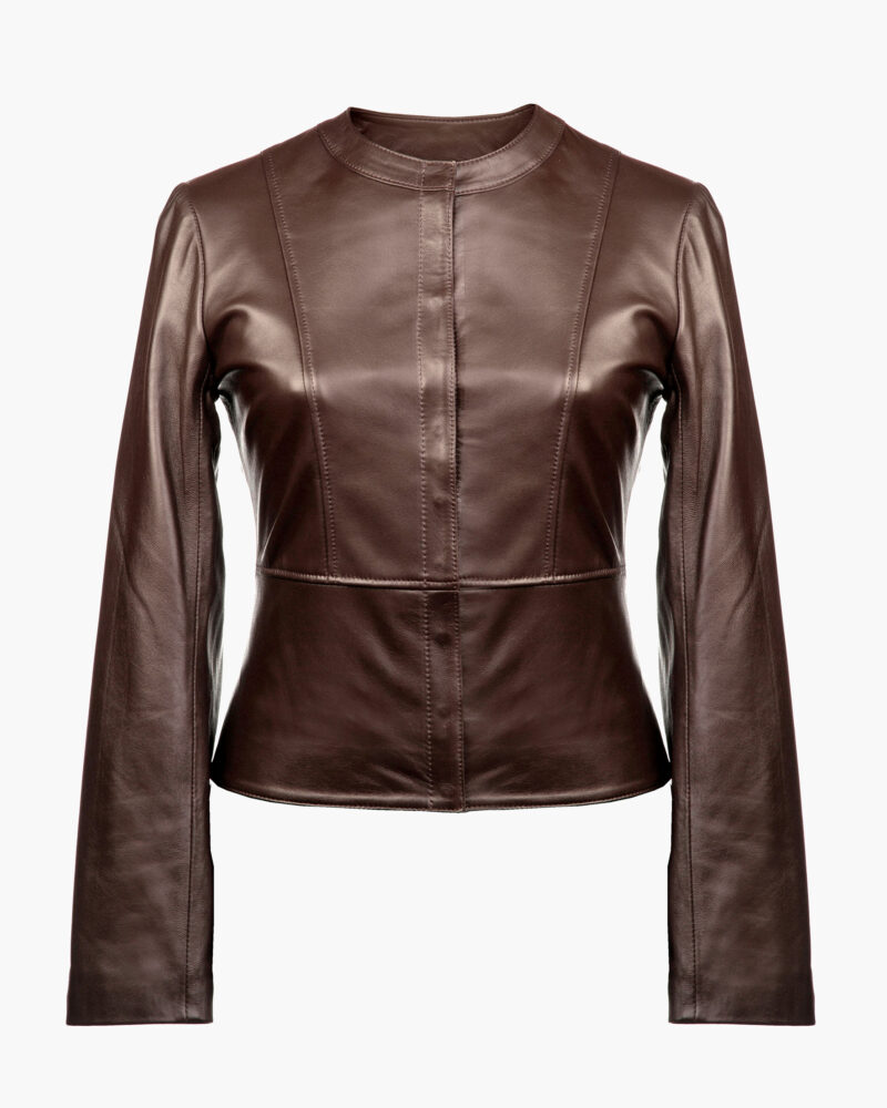 Handcrafted jacket in Turkish sheepskin leather. Classic design with stand-up collar and front zipper. Silver-tone buttons. Slim fit.