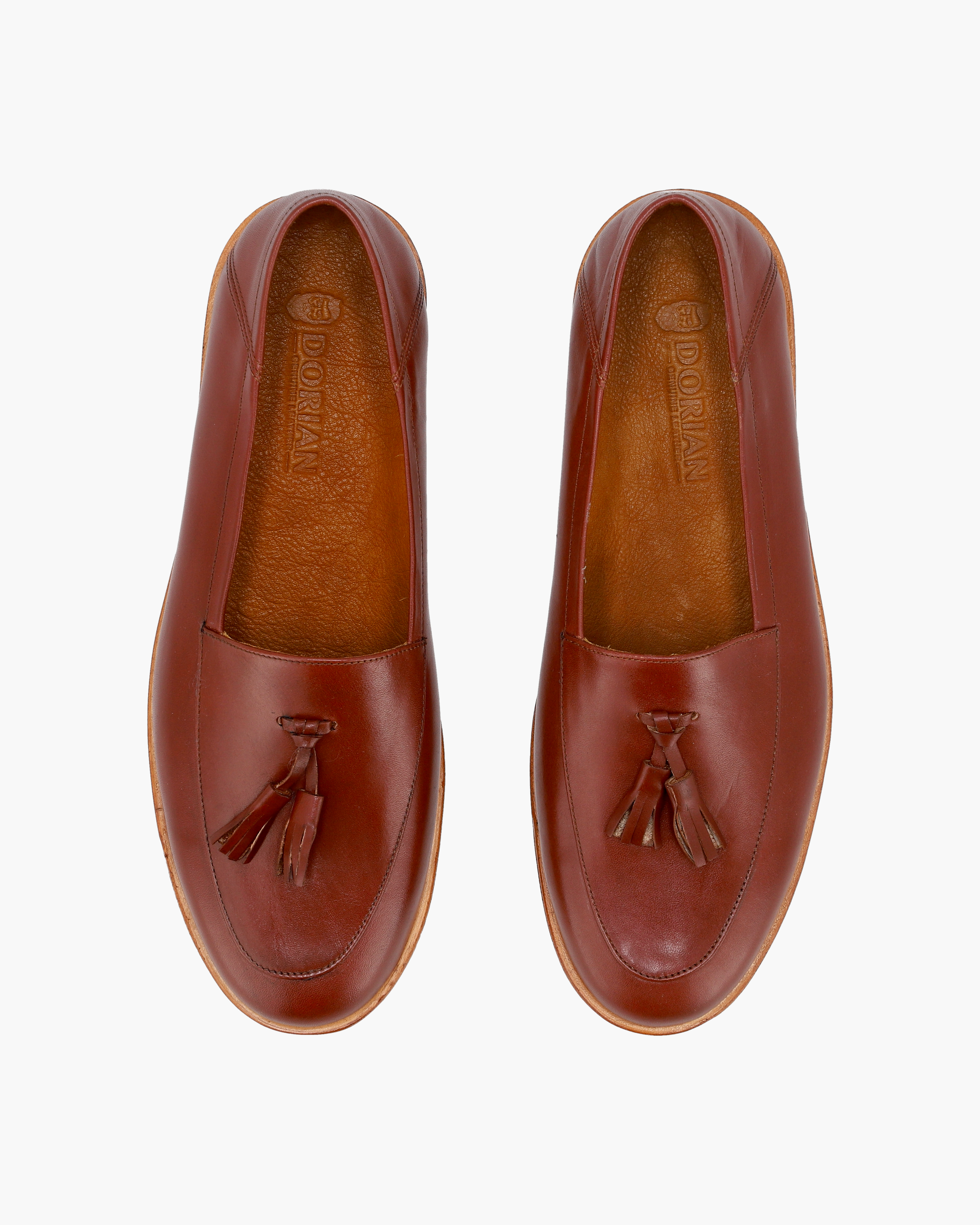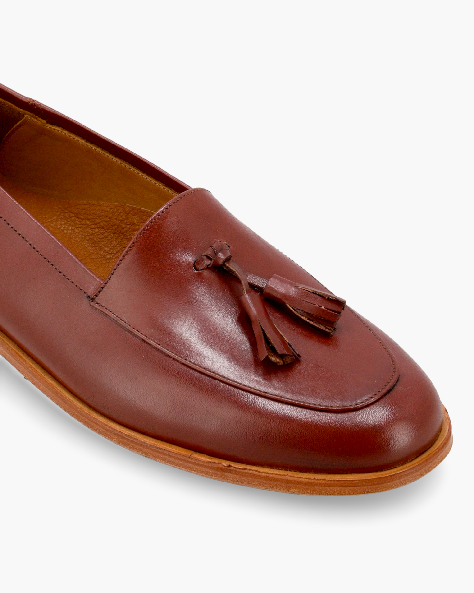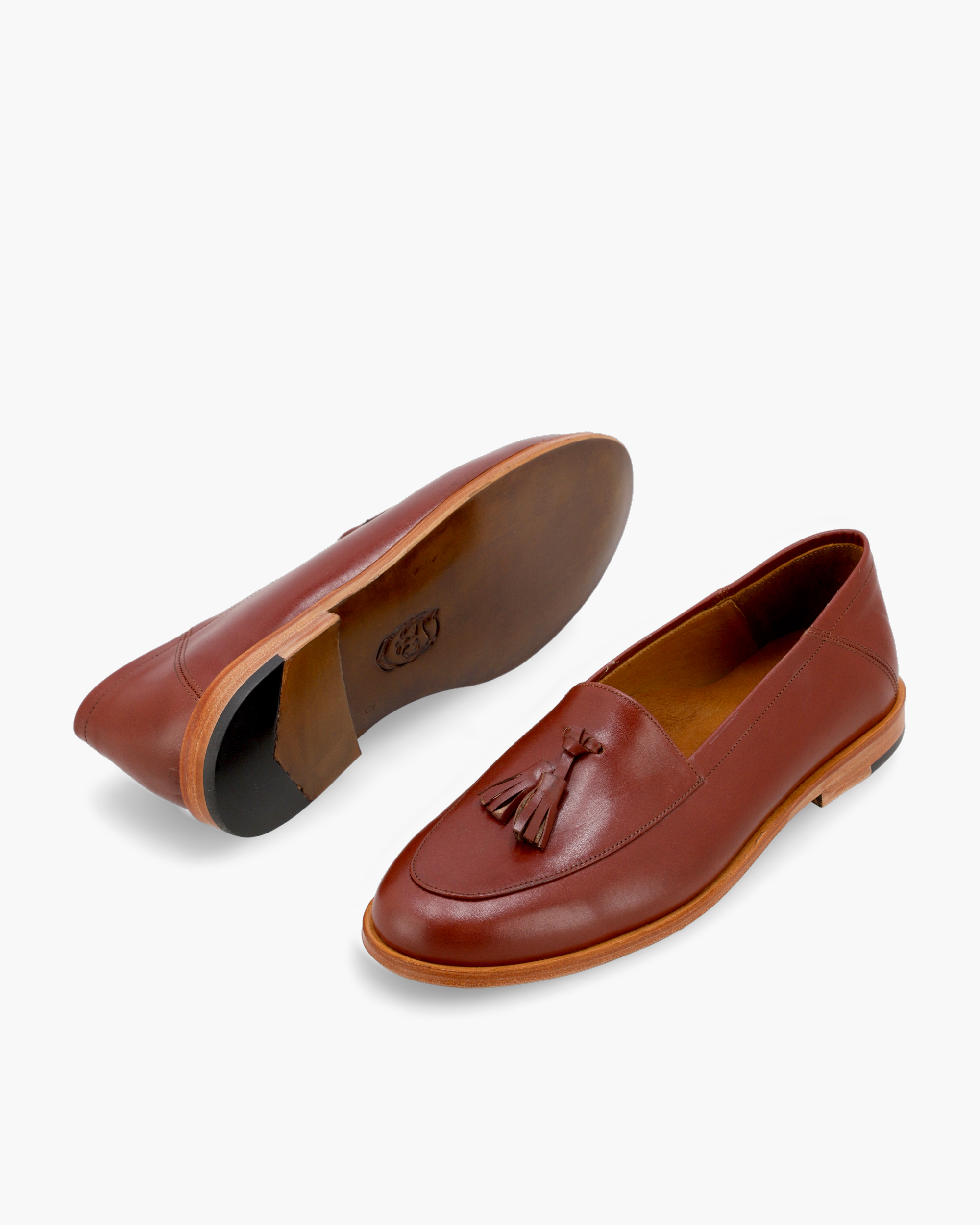 Leather sole with non-slip heel, leather-lined insole, and soft leather lining.