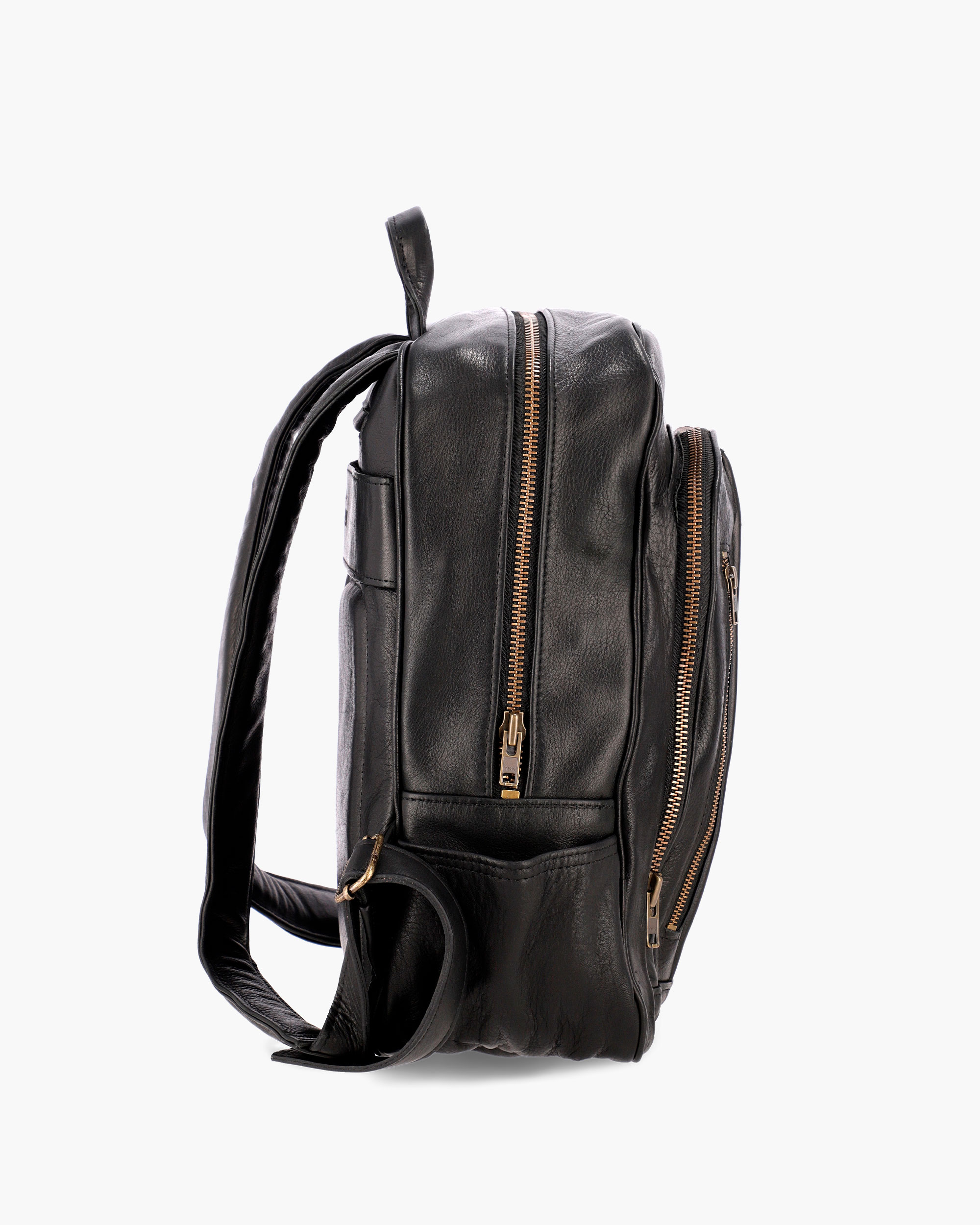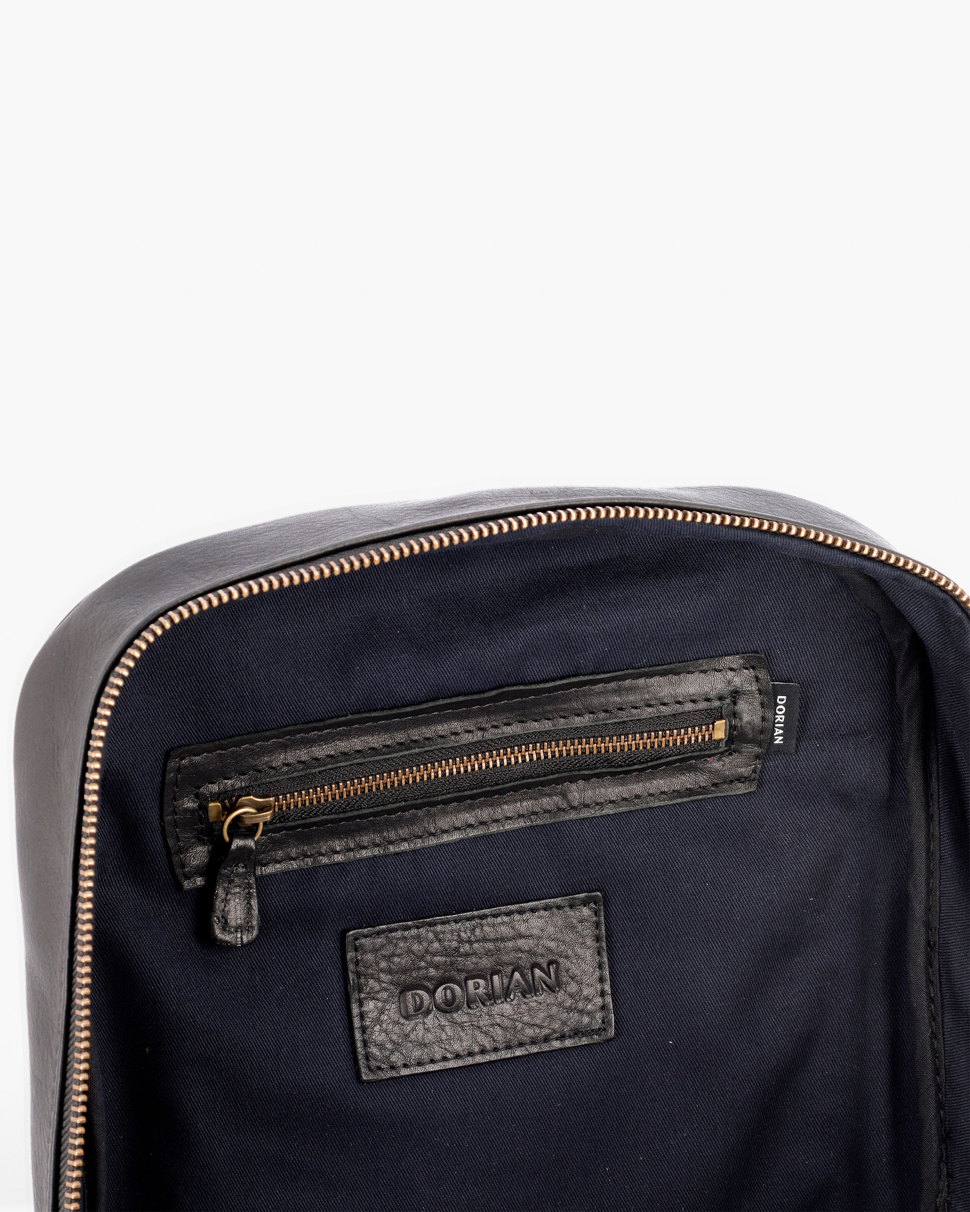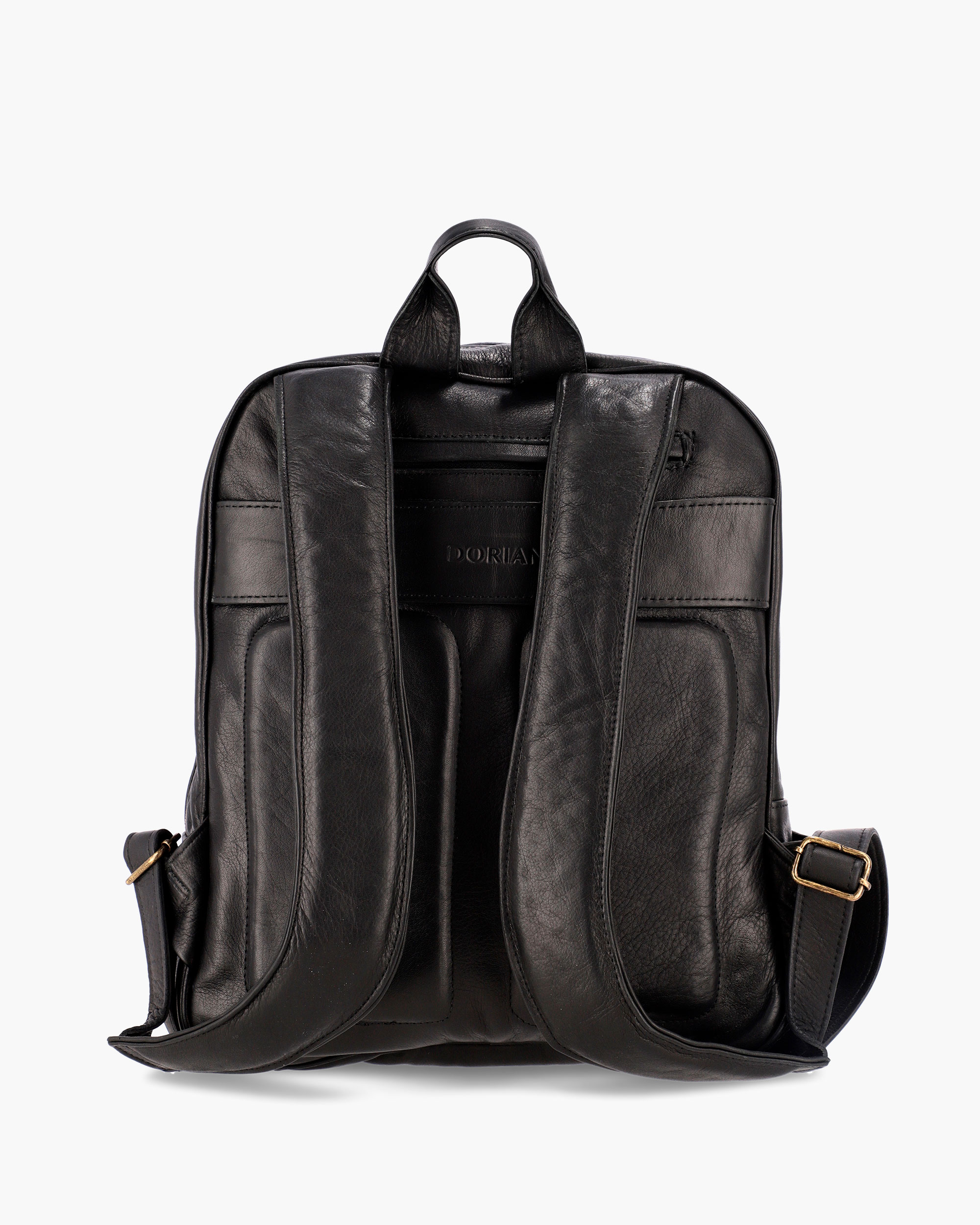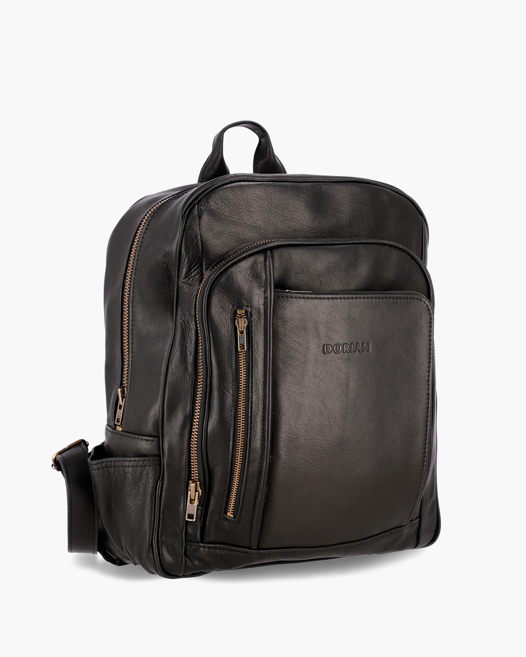 Three external pockets, one hidden back pocket, and an internal laptop sleeve. Measurements