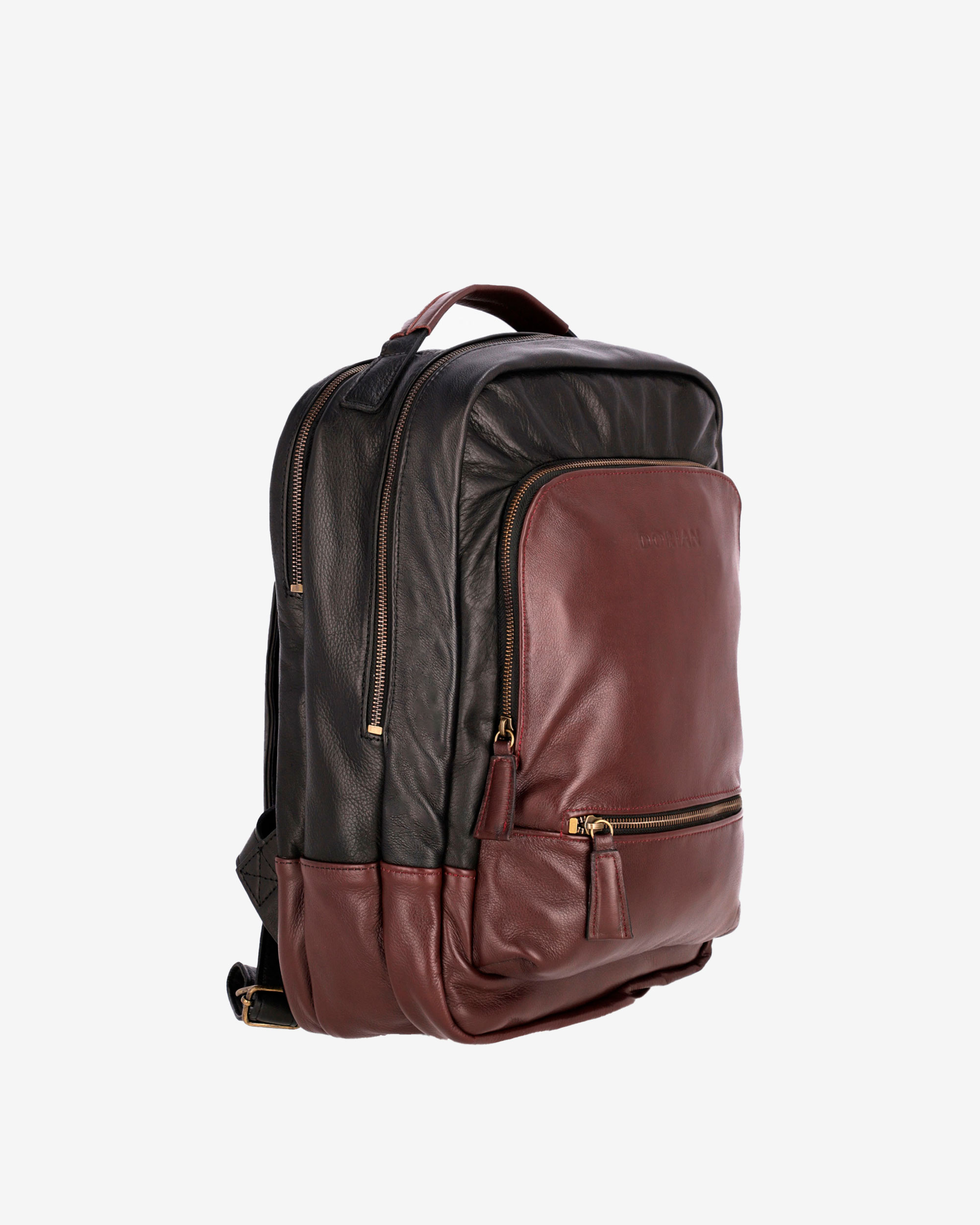 Backpack with an exterior made entirely of 100% genuine cowhide leather. Features a reinforced gabardine interior for added comfort and padding to protect your everyday belongings. High-quality YKK metal zippers provide added security.