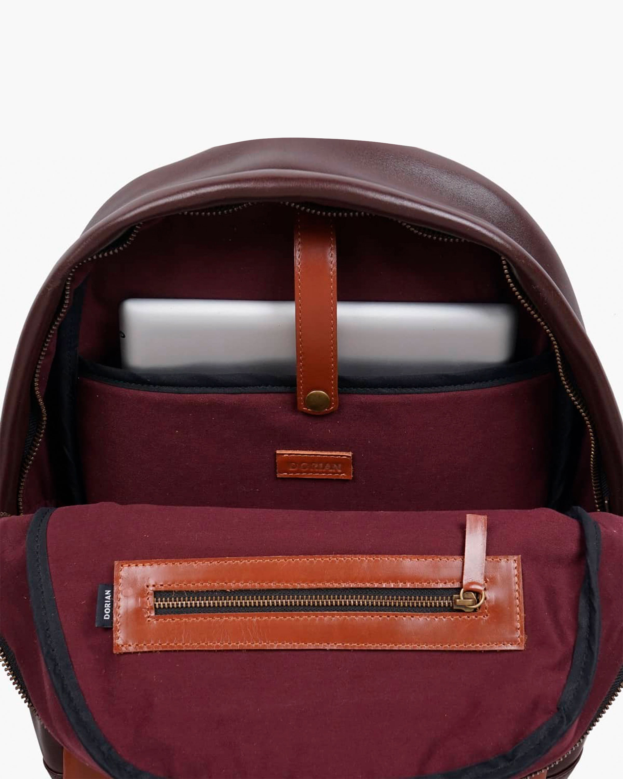 Handcrafted backpack made of genuine cowhide leather. With internal and external pockets.