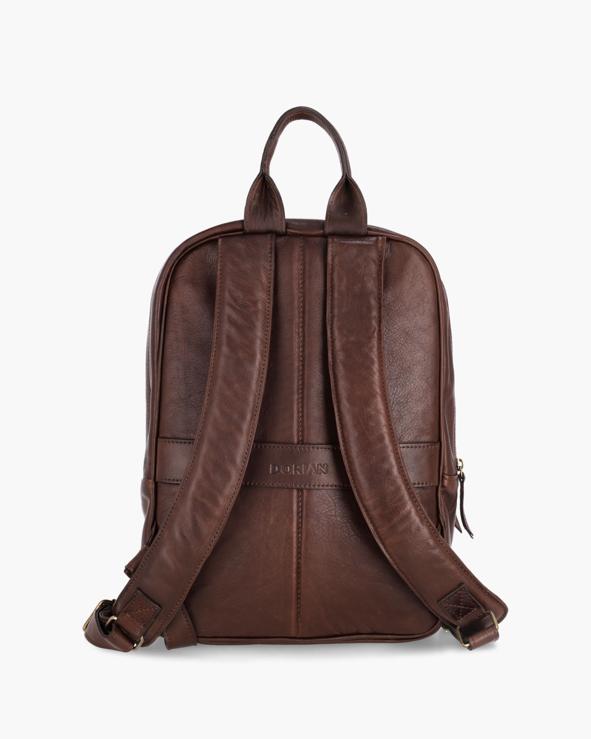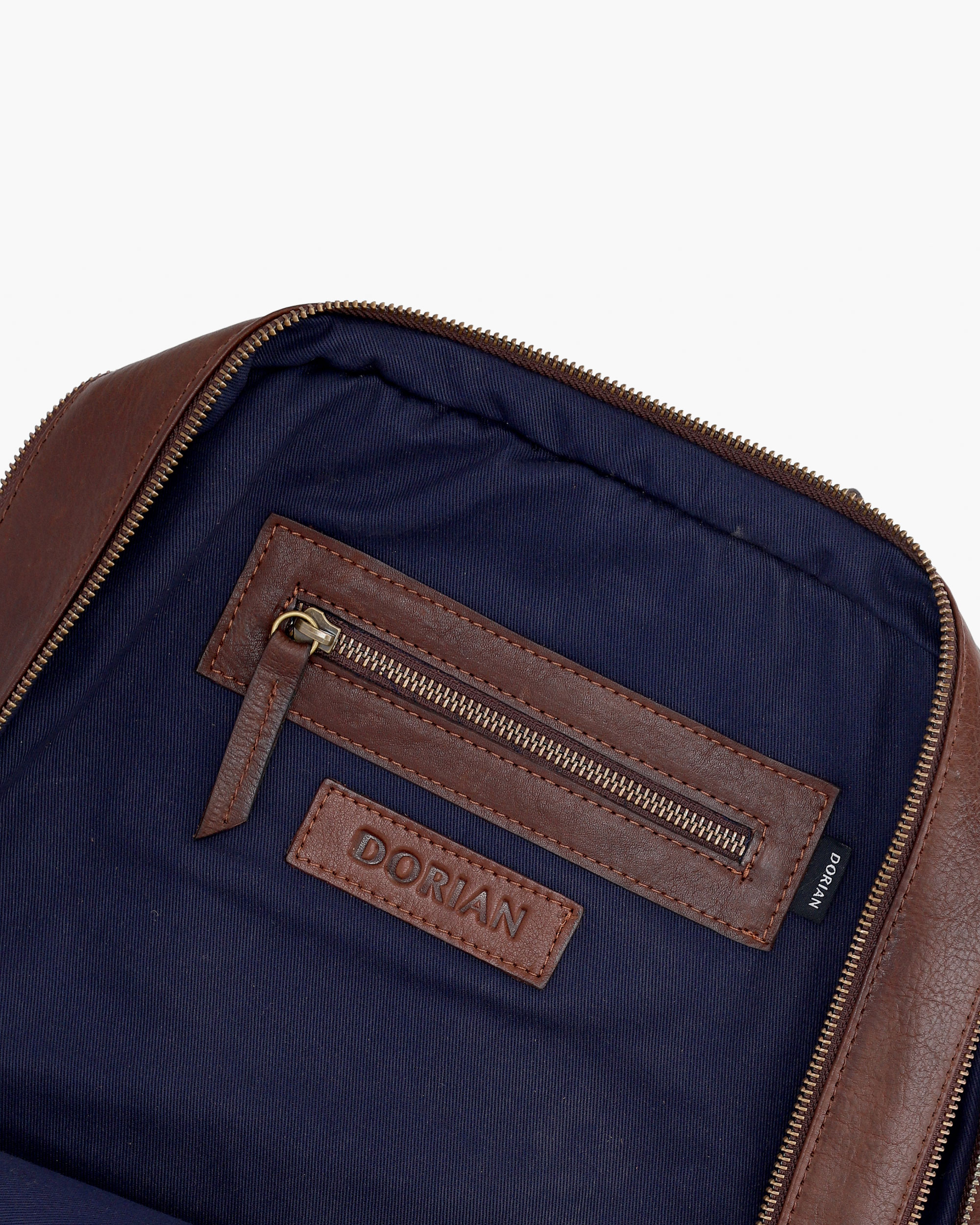 It features a 100% cowhide leather exterior with reinforcements for added comfort and durability, and a padded gabardine interior for enhanced protection of your everyday belongings. It also boasts high-quality YKK metal zippers.