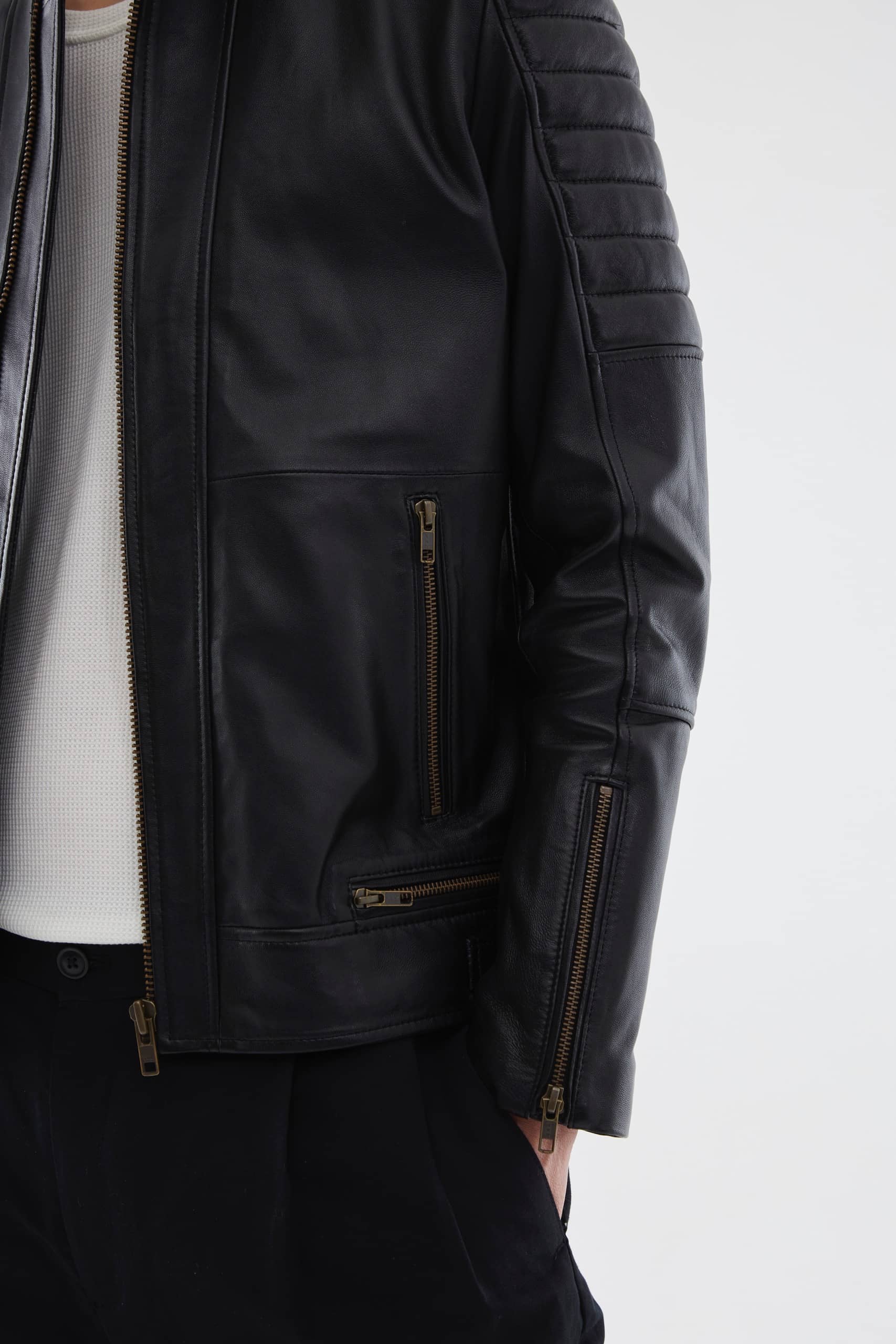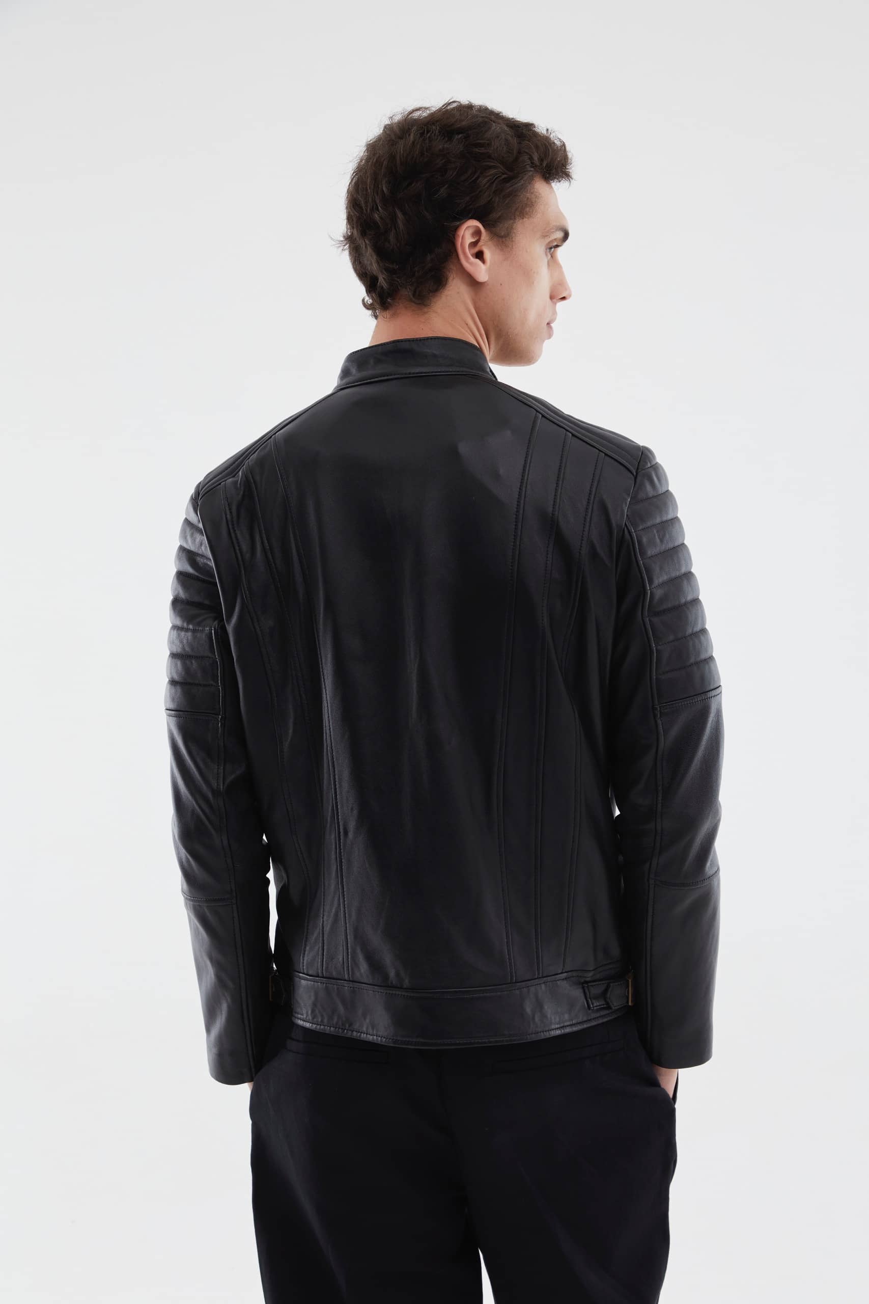 Handcrafted jacket made from 100% genuine Turkish sheepskin leather. Classic design with antique bronze buttons and zippers, quilted detailing on the sleeves and back. Fully lined with suede-like microfiber. Waist with buckles for a customized fit.