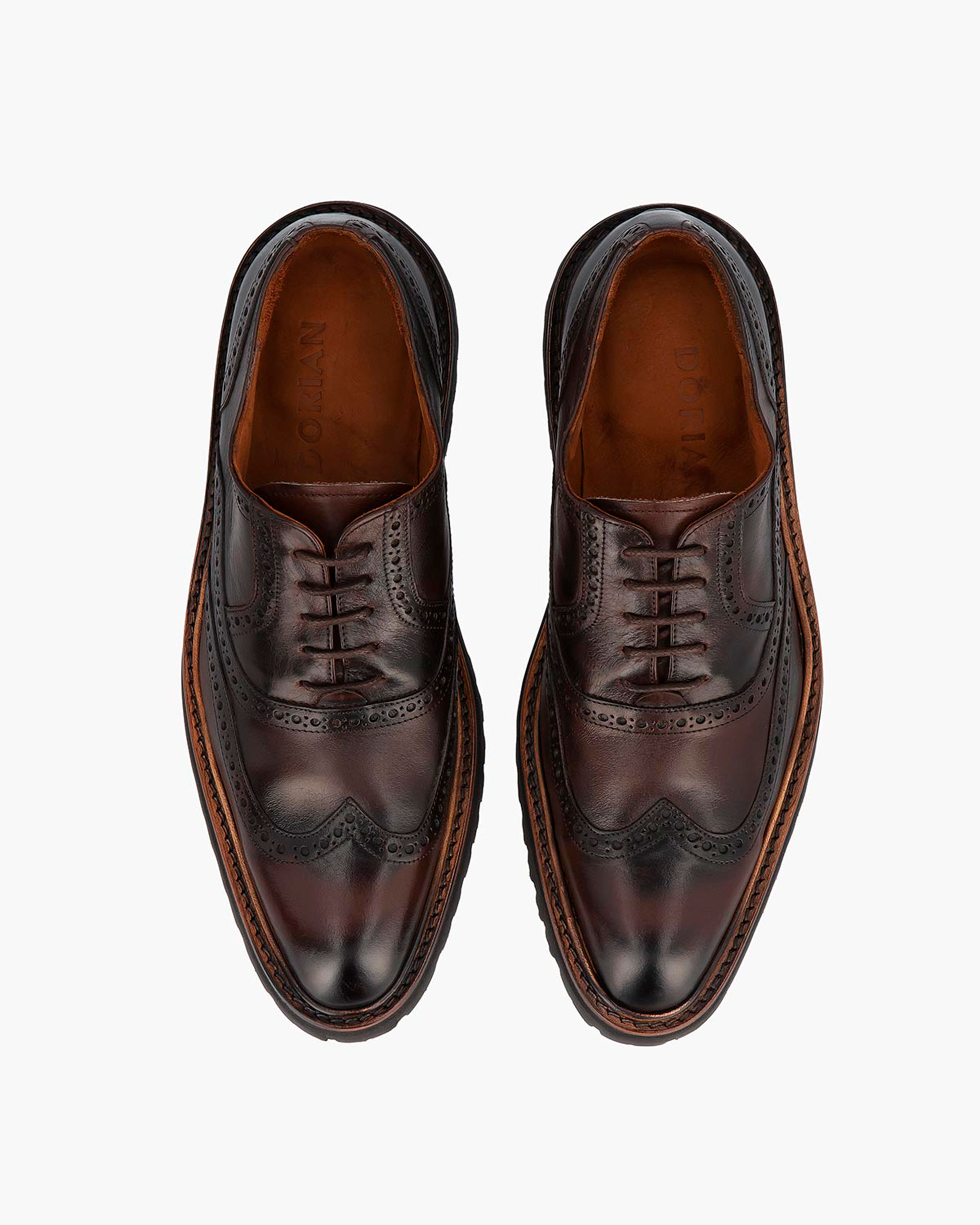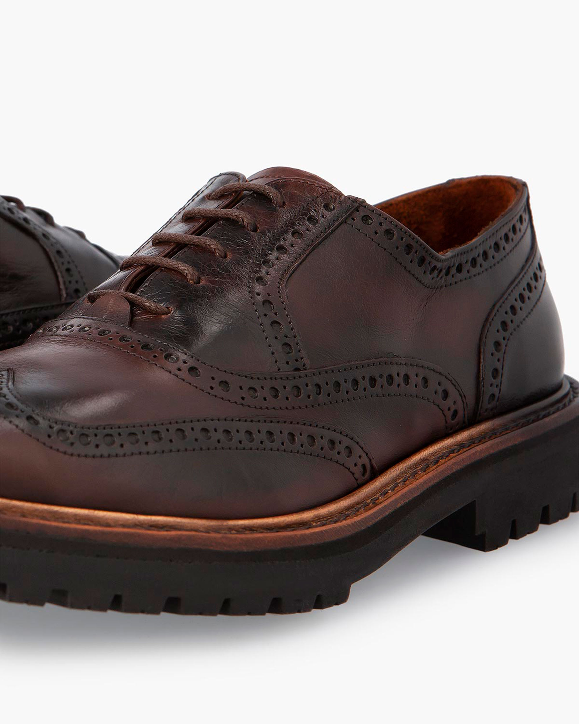 Decorative perforations (broguing) on ​​the heel, instep, and toe.